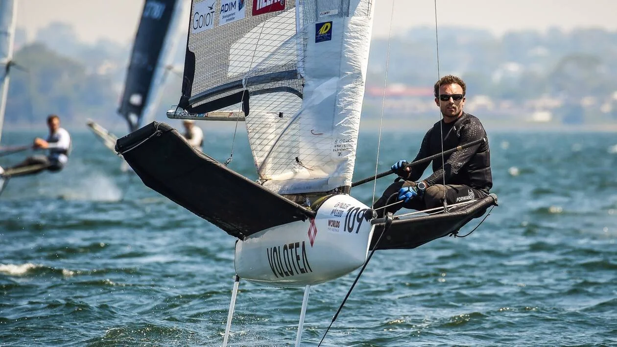 The A-Class is the benchmark single-handed foiling catamaran. It combines technical development with a high-level international circuit. The A-Class sails on “four points”: the two front foils and the two rudders, similar to the Nacra 17 used in the Olympic Games.